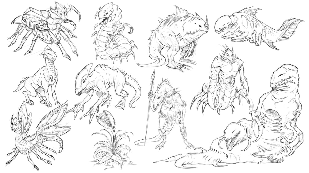 You will learn to draw and study the spine since it is the foundation of almost any creature you will draw. I will walk you through creating lots of different concepts in this course.