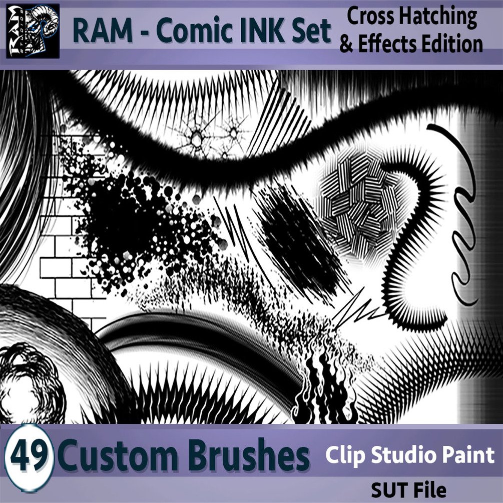 RAM - Clip Studio Paint / Manga Studio 5 - Inking Brushes - 49 Pack